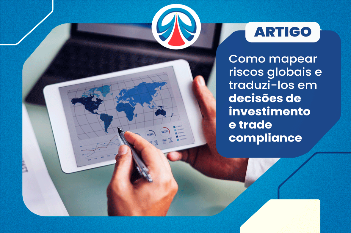 Expandir ou investir globalmente hoje significa lidar com uma paisagem de incertezas que vão muito além de tarifas e logística. Segundo a Associação de Comércio Exterior do Brasil (AEB), as principais categorias de risco global incluem instabilidade política, riscos cambiais, compliance regulatório e disrupções na cadeia de suprimentos.